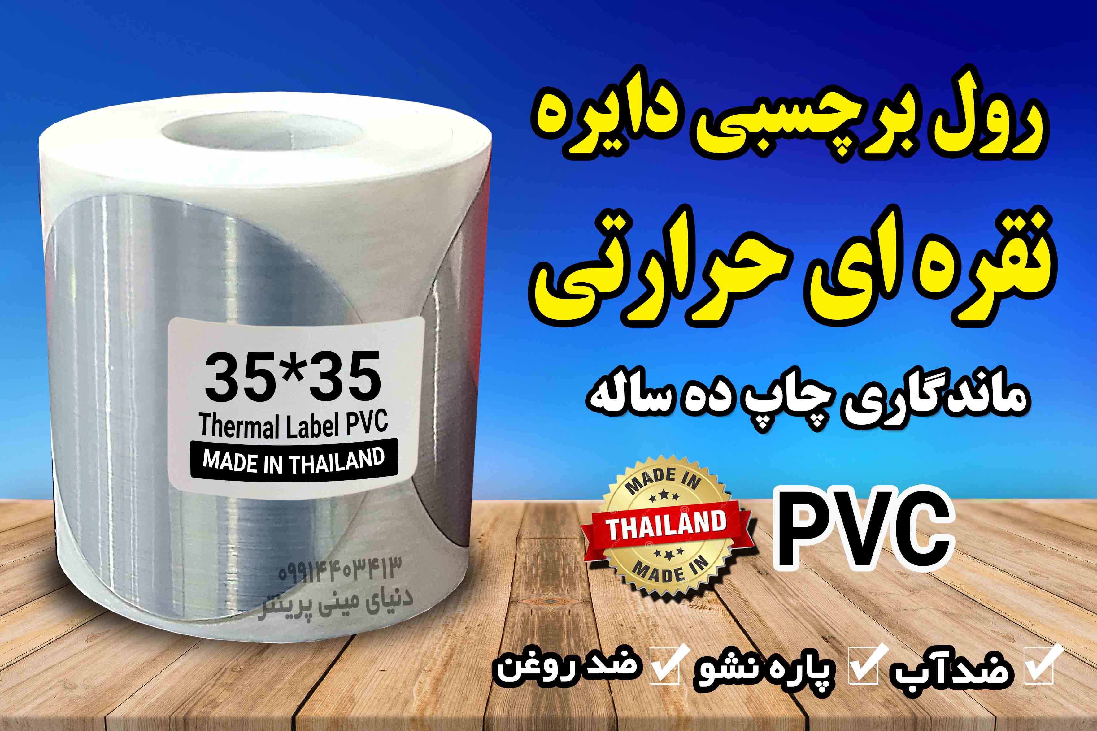 لیبل حرارتی pvc تایلندی نیمه براق بالاترین کیفیت چاپ