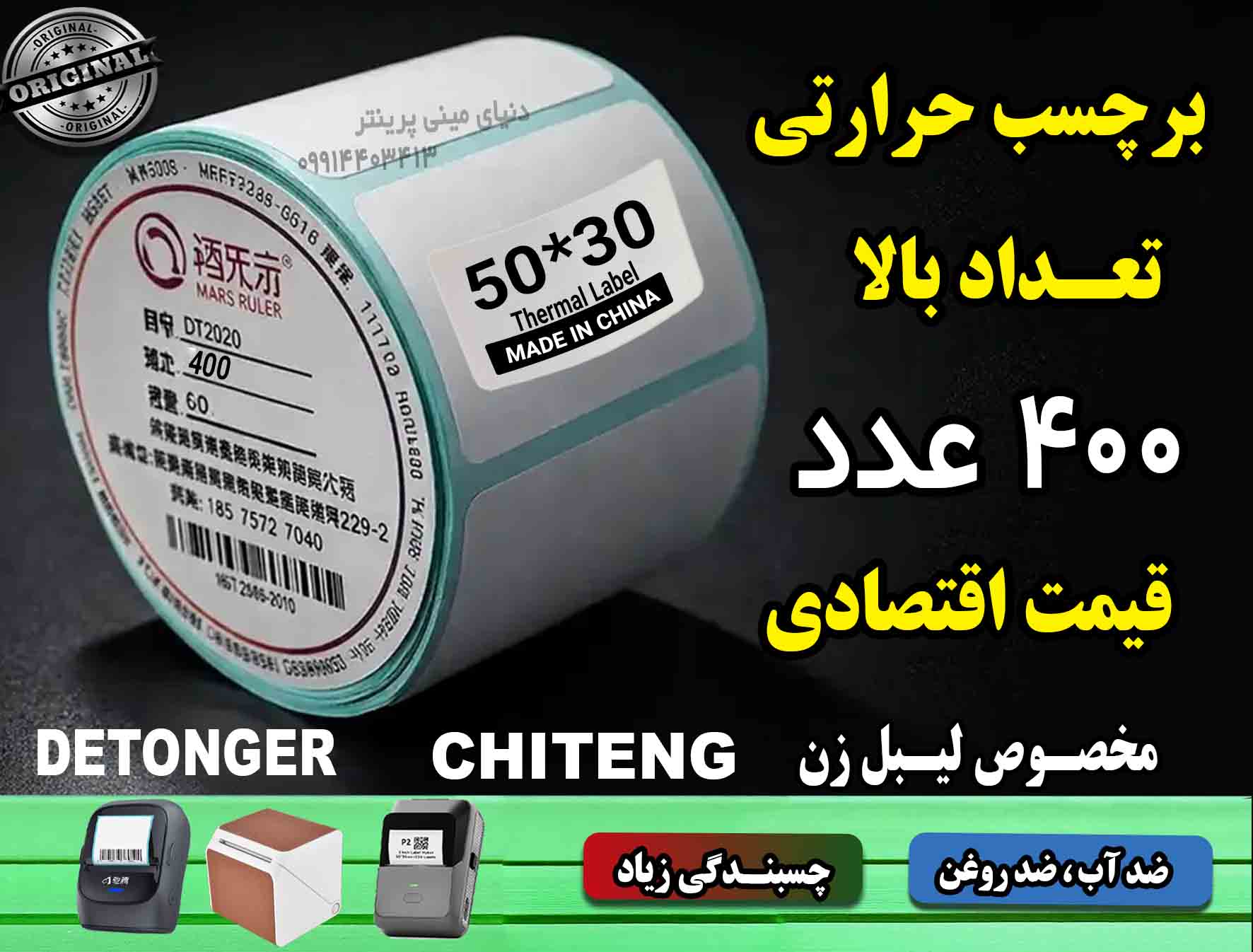 تعداد در هر رول برچسب: 4 عدد رول جمعا 800 عدد برچسب