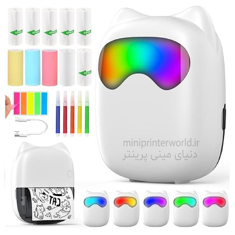 مینی پرینتر گربه رباتیک نورپردازی LED منحصر به فرد 7 رنگ زیبا مخصوص هدیه
