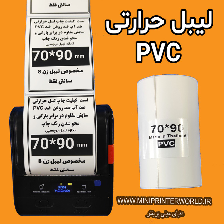 رول برچسبی مینی پرینتر حرارتی اندازه 90 * 70 میلیمتر جنس PVC پاره نشو ضدآب ، چاپ بسیار شفاف و عالی