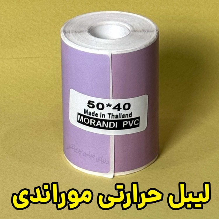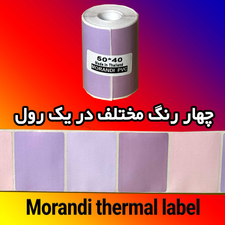 لیبل حرارتی رنگی طرح موراندیA اندازه 40*50 میلیمتر جنس PVC پاره نشو ضدآب ، چاپ بسیار شفاف و عالی