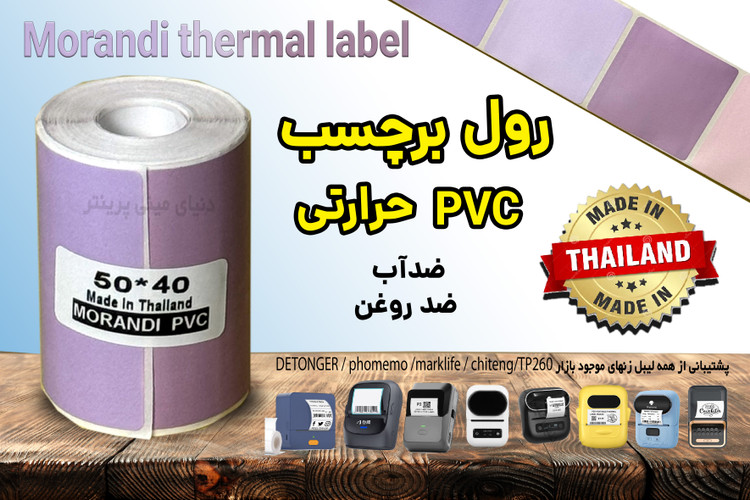 لیبل pvc حرارتی تایلندی اغلب لیبل زن های حرارتی موجود در بازار رو پشتیبانی میکنه( phomemo , marklife . tp260 . detonger . bixelon. chiteng)