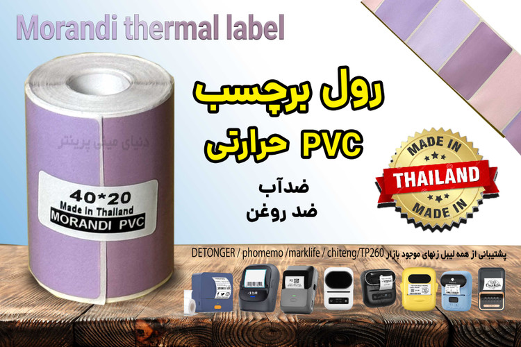 لیبل pvc حرارتی تایلندی اغلب لیبل زن های حرارتی موجود در بازار رو پشتیبانی میکنه( phomemo , marklife . tp260 . detonger . bixelon. chiteng)