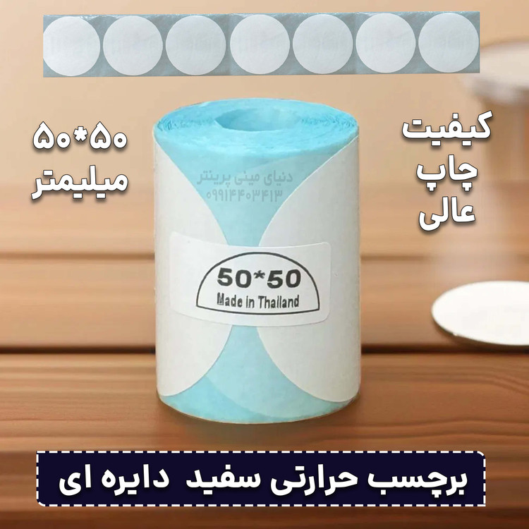 لیبل حرارتی دایره اندازه 50*50 میلیمتر ضدآب ، چاپ بسیار شفاف و عالی