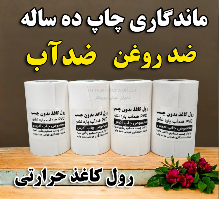 رول کاغذ حرارتی با ماندگاری چاپ 10 ساله بسته 4 عددی مخصوص چاپ آدرس چاپگرهای بلوتوثی (جنس کاغذ pvc)
