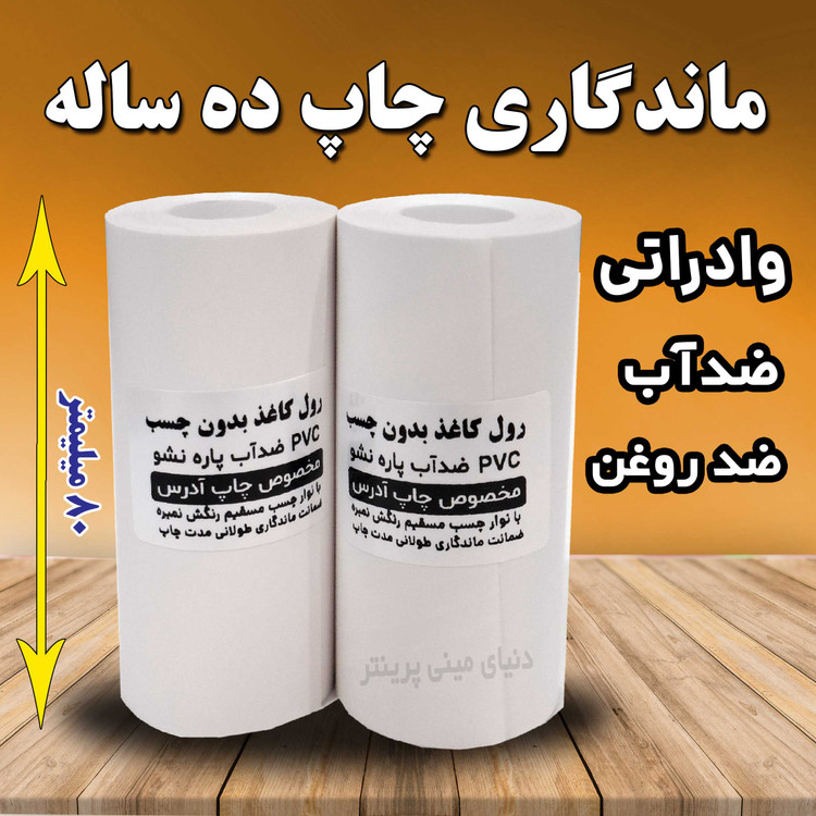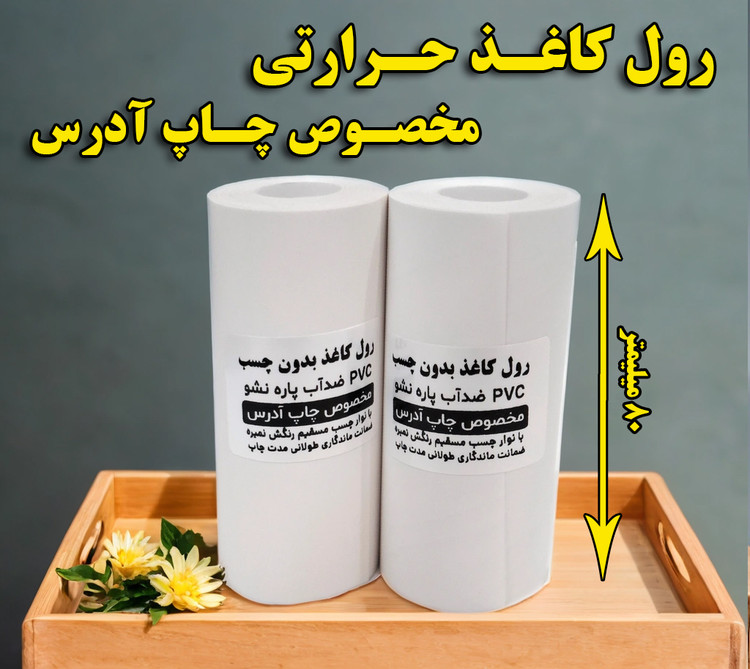 رول کاغذ 80 میلیمتری حرارتی با ماندگاری چاپ 10 ساله مخصوص چاپ آدرس چاپگرهای بلوتوثی (جنس کاغذ pvc)
