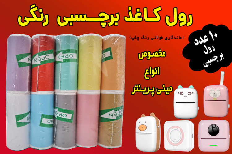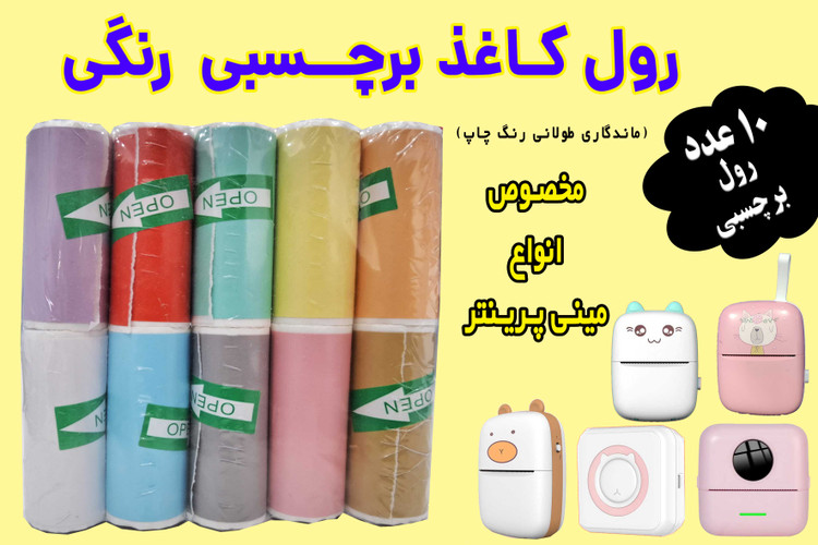 کاغذ برچسبدار رنگی مینی پرینتر و چاپگرهای بلوتوثی ( بسته اقتصادی) با ضمانت ماندگاری چاپ طولانی مدت