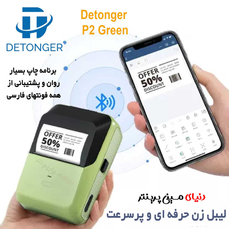 لیبل زن دتونگر P2 GREEN حرارتی بدون نیاز به جوهر و کیفیت چاپ عالی