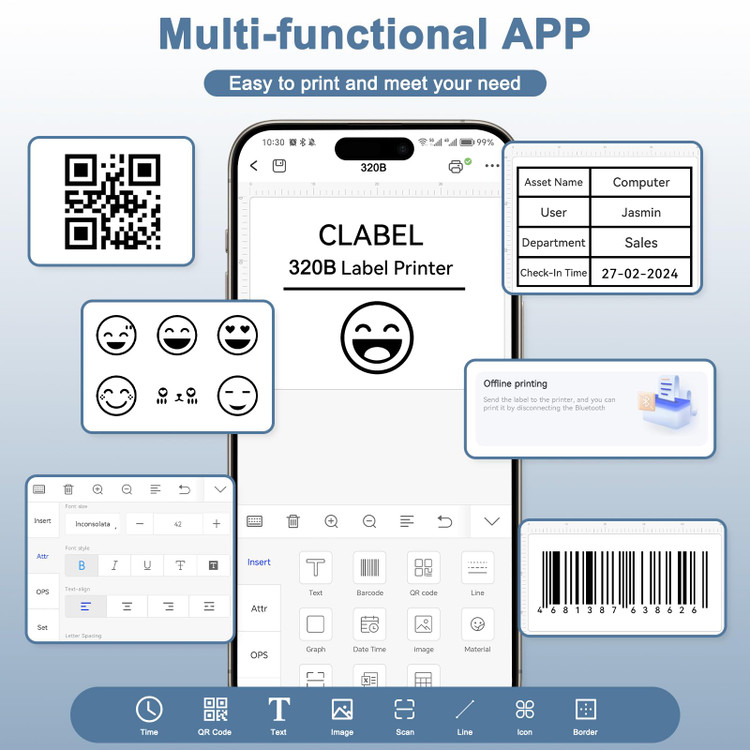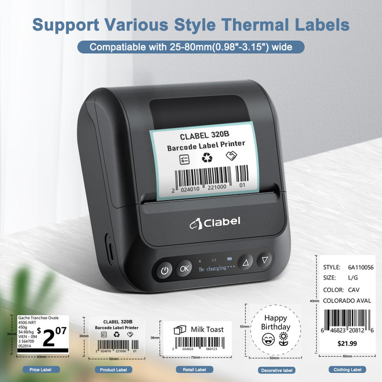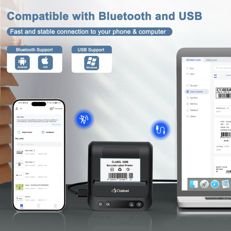 سازگاری قدرتمند و بالا - می توانید از الگوهای برچسب از پیش طراحی شده لذت ببرید، سازنده برچسب انواع فونت ها، متون مختلف، نمادها و نمادها را ارائه می دهد. اگر یک کسب و کار کوچک، مربوط به کار، نیازهای خانه/دفتر کار یا فقط برای سرگرمی دارید، این یک انتخاب عالی است! چاپگر بارکد 320B نیاز تلفن و رایانه شخصی را ترکیب می کند، سازگار با iOS، تلفن هوشمند اندروید و ویندوز، نه تنها می تواند از برچسب های مارک ما استفاده کند، بلکه می تواند از برچسب های مارک های دیگر نیز استفاده کند.