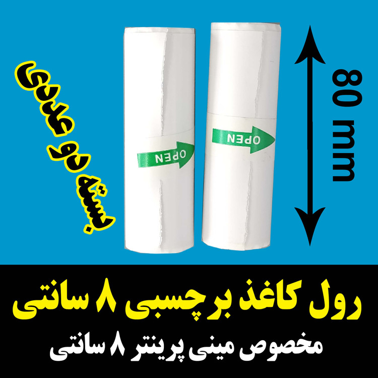 رول کاغذ برچسبدار پهنای 8 سانت در 200 سانت اصلی مینی پرینتر و چاپگرهای بلوتوثی با ضمانت ماندگاری چاپ طولانی مدت