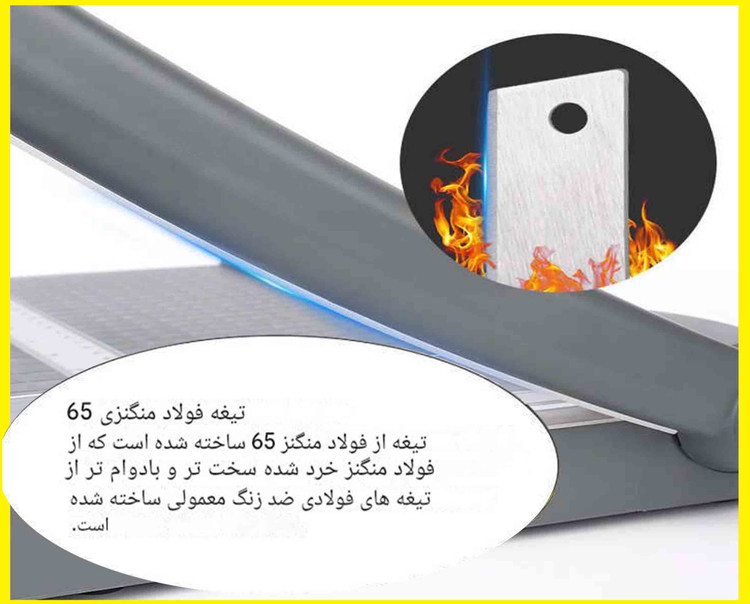 تیغه فولادی بسیار تیز برش را از روی پشته های کاغذ آسان می کند!