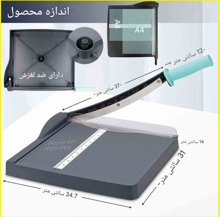 [مشخصات محصول] اندازه محصول: 347X310X40 میلی متر، وزن: تقریباً 1 کیلوگرم، اندازه قابل برش: 305x305 میلی متر، محدوده برش قابل استفاده برش کاغذ: A4، A5، B5، B6
