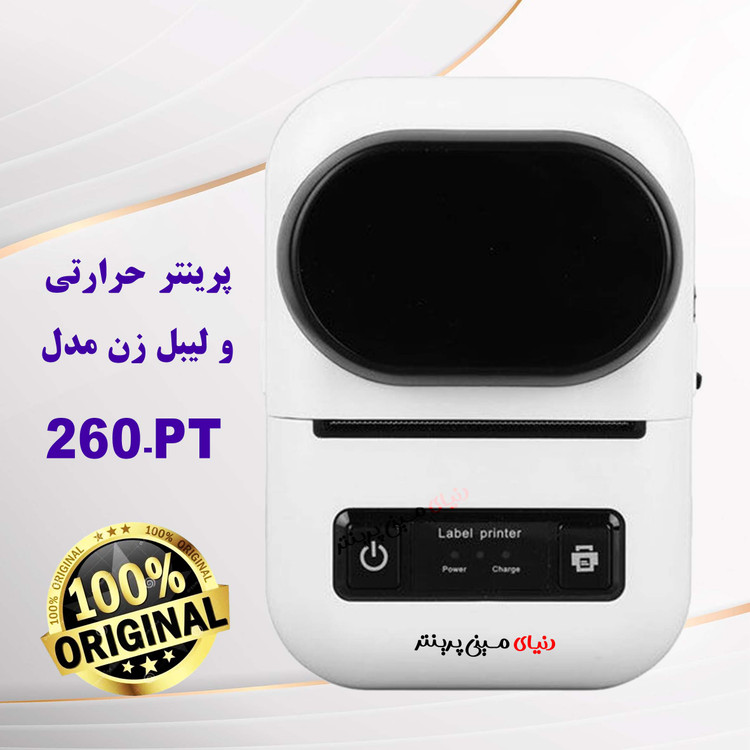 پرینتر حرارتی و لیبل زن مدل PT-260 به همراه سه رول هدیه برچسب ضد آب در اندازه مختلف