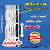 برچسب حرارتی PVC اندازه 50*50 میلیمتر جنس پاره نشو ضدآب ، چاپ بسیار شفاف