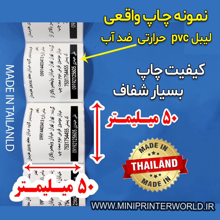 لیبل حرارتی pvc ساخت تایلند به استفاده ازمواد اولیه مرغوب چاپی بسیار پررنگ و شفاف به شما میدهد