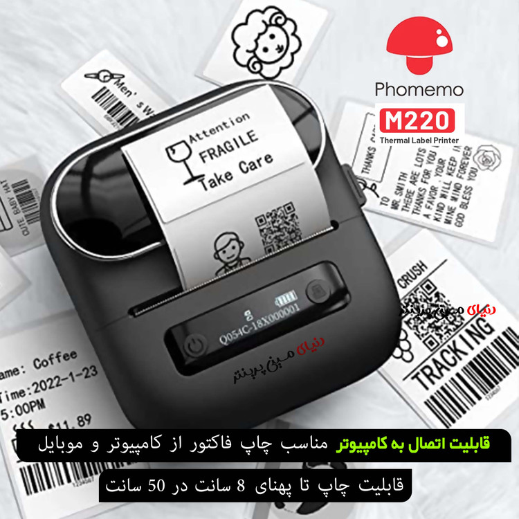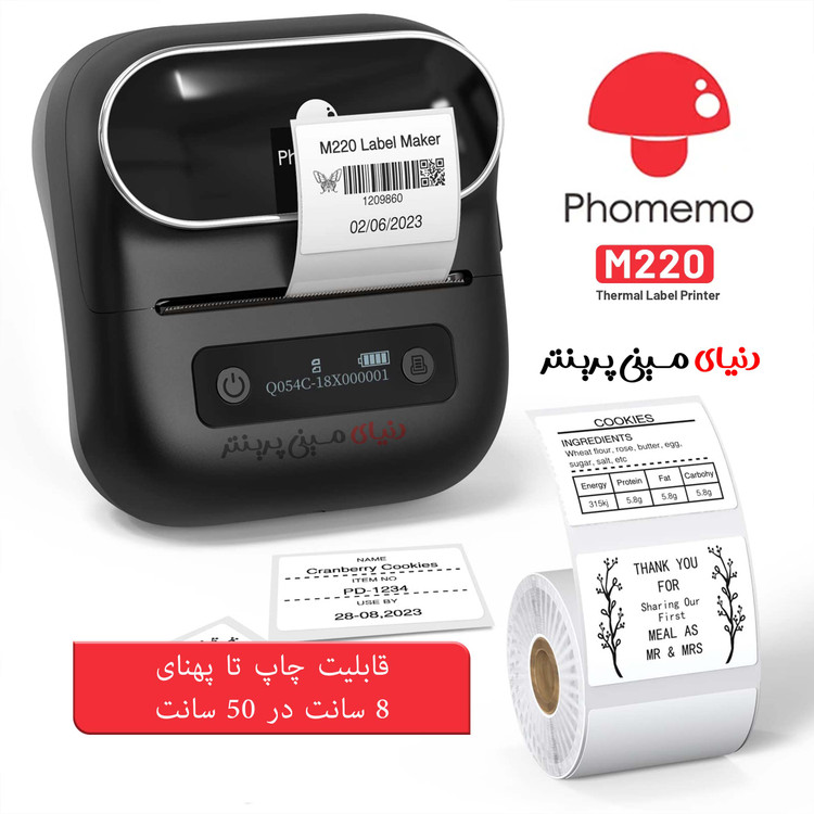 چاپگر لیبلزن Phomemo مدل M220 پهنای چاپ 80 میلیمتر تفاوت اصلی با مدل M110 که عرض چاپش 50 میلیمتر هست