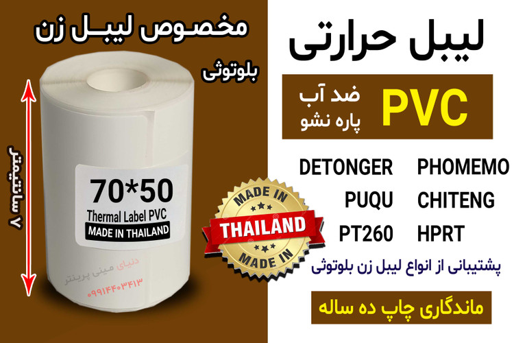 لیبل pvc حرارتی تایلندی اغلب لیبل زن های حرارتی موجود در بازار رو پشتیبانی میکنه( phomemo , marklife . tp260 . detonger . bixelon. chiteng)