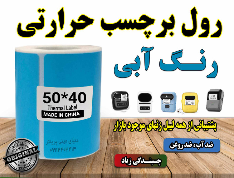 کاغذ برچسبی حرارتی رنگ آبی ساخت چین با کیفیت چاپ بالا و ماندگاری طولانی مدت