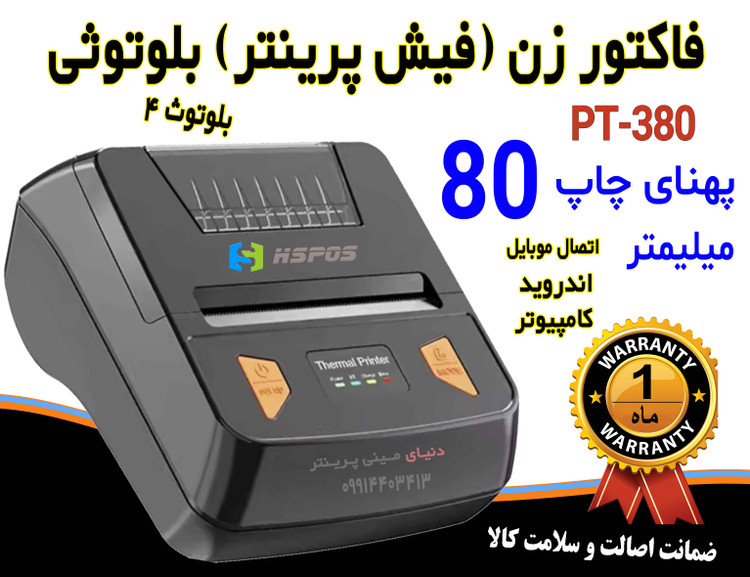 فیش پرینتر و فاکتور زن بلوتوثی همراه کمری مدل اچ پرینتر 380 پهنای چاپ 80 میلیمتر