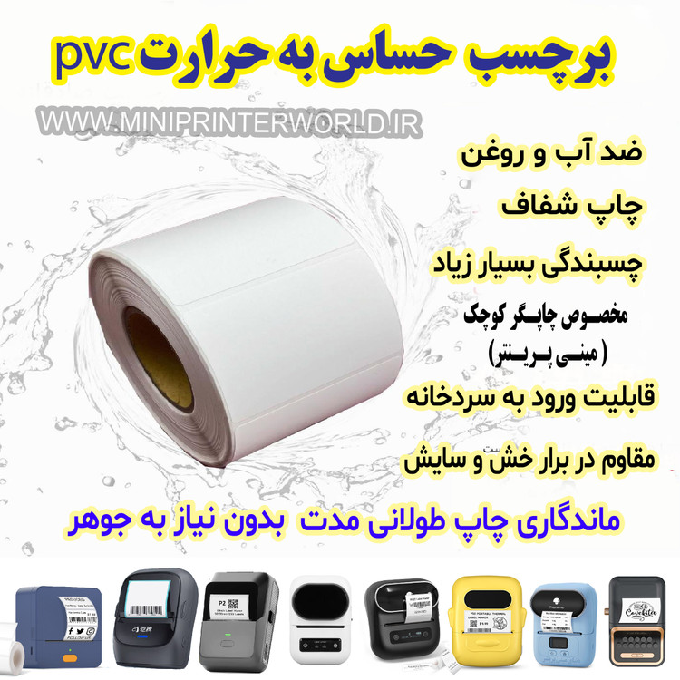 برچسب حرارتی PVC اندازه 50*25 میلیمتر جنس پاره نشو ضدآب ، چاپ بسیار شفاف