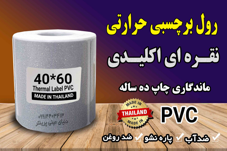 برچسب حرارتی نقره ای اکلیدی 60*40 میلیمتر | درخشش متالیک با ماندگاری ۱۰ ساله | رول 100 عددی