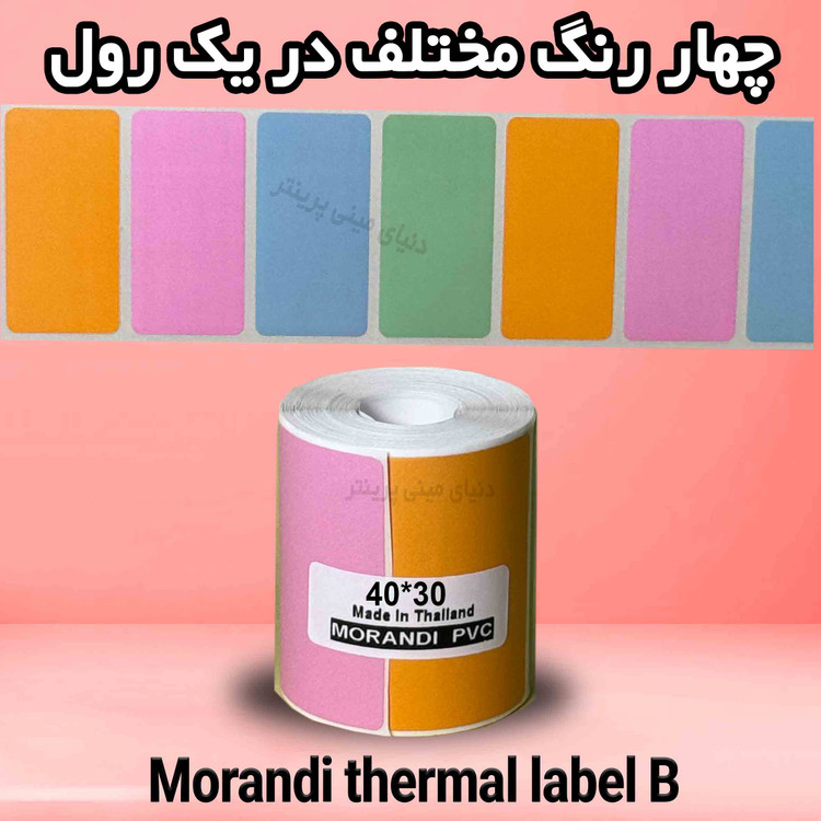 برچسب حرارتی PVC رنگی موراندی (4 رنگ در 1 رول) 30*40 میلیمتر PVC تعداد 200 عدد