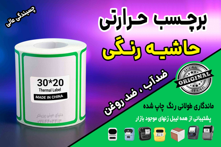 برچسب حرارتی حاشیه رنگی وارداتی اندازه 30*50 میلیمتر ضدآب و روغن با ماندگاری چاپ یک ساله ( 200 عدد )