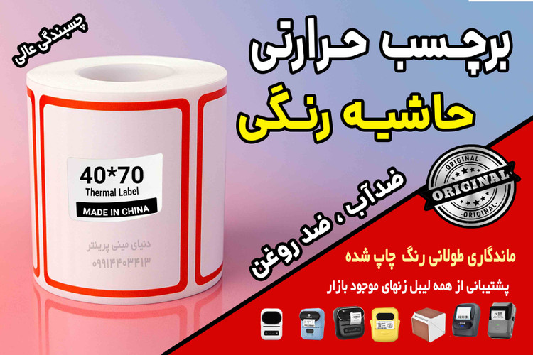 برچسب حرارتی حاشیه رنگی وارداتی اندازه 70*40 میلیمتر ضدآب و روغن با ماندگاری چاپ یک ساله ( 125 عدد )