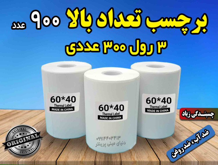 تعداد در هر رول برچسب: 3 عدد رول جمعا 900 عدد برچسب
