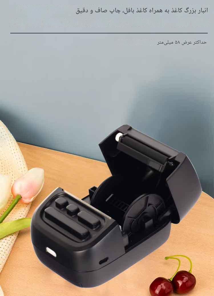 قابلیت چاپ رول پوزفروشگاهی و چاپ برچسبیکسره 57 میلیمتر در 300 سانت داره و