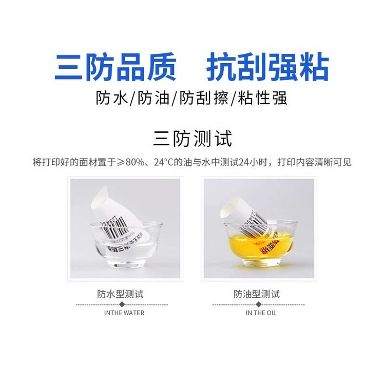 این لیبلها فقط در حرف مقاوم نیستند؛ بلکه در عمل نیز تست شدهاند. در تستهای آزمایشگاهی، لیبلهای چاپ شده به مدت ۲۴ ساعت در آب، روغن و حتی الکل قرار گرفتهاند و پس از آن، نوشتهها و بارکدها کاملاً خوانا و بدون تغییر باقی ماندهاند.