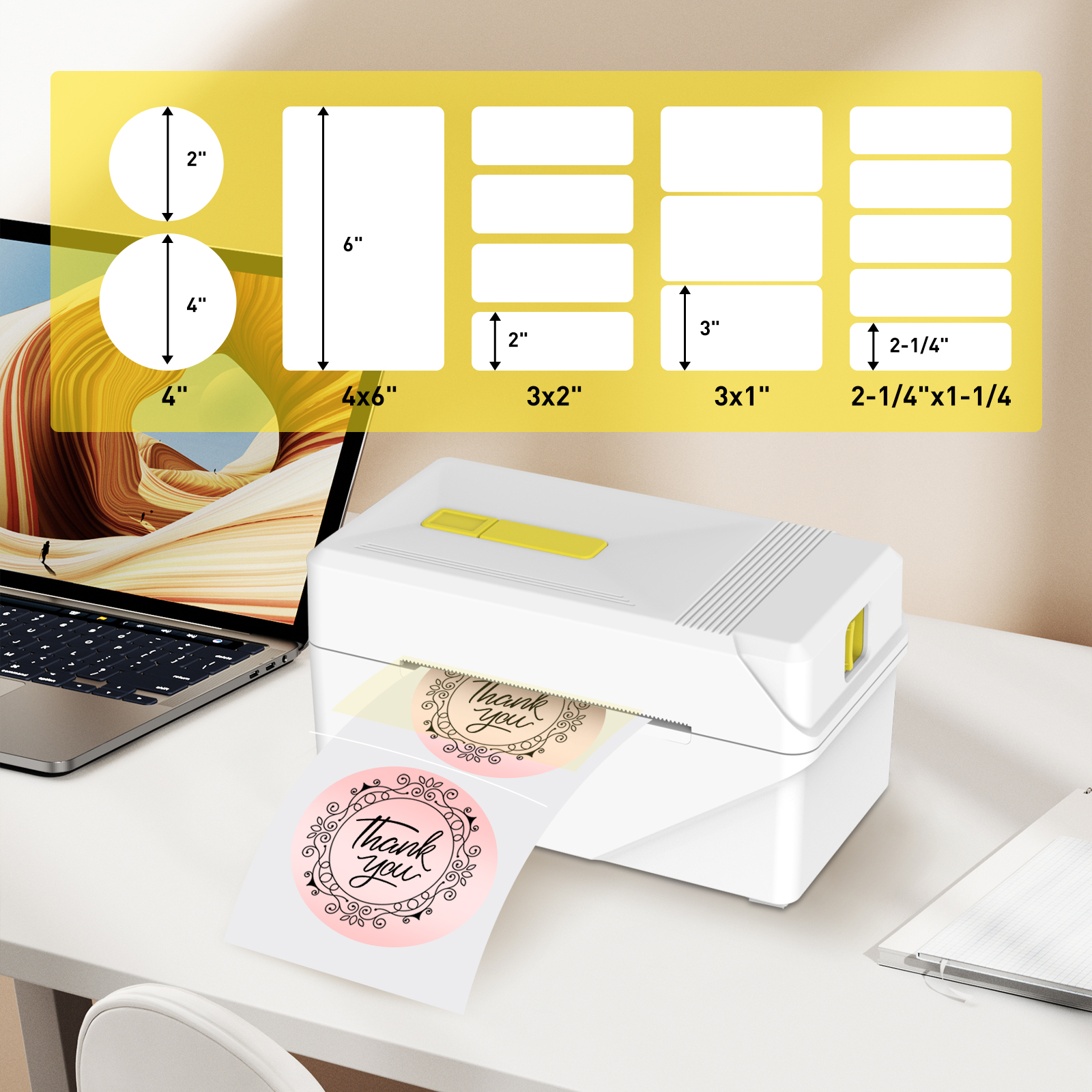 - پشتیبانی از سایزهای متنوع: از لیبلهای استاندارد پستی (مانند سایز ۱۰×۱۵ سانتیمتر) گرفته تا برچسبهای قیمت، بارکد، لیبلهای دایرهای و آدرس، A318 با طیف گستردهای از اندازهها سازگار است.