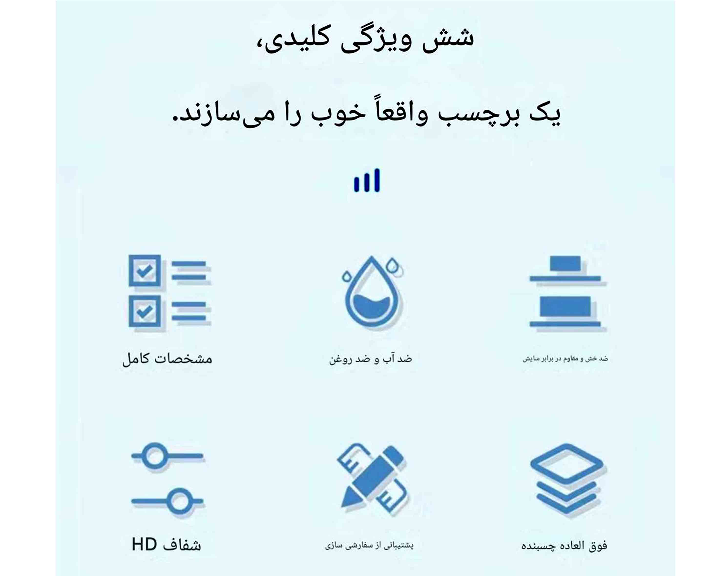 کلمات کلیدی پیشنهادی (Tags): لیبل شفاف، لیبل شیشهای، لیبل ضدآب، لیبل پرینتر حرارتی، رول لیبل PVC، لیبل ترنسپرنت، کاغذ مینی پرینتر، چاپ بدون جوهر.