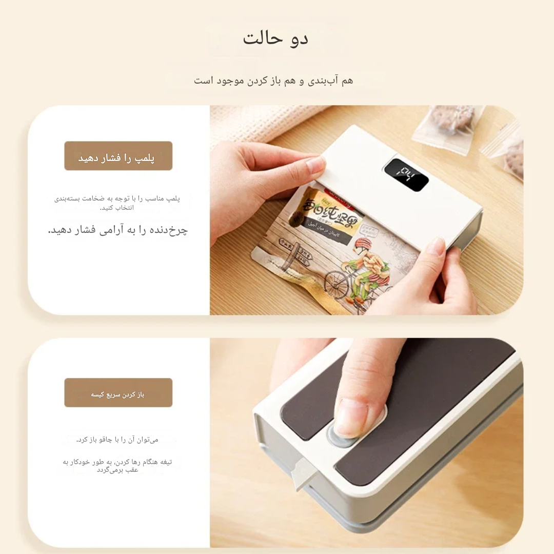 این مینی درزگیر شارژی کمک میکنه بستهها رو بعد از باز شدن،