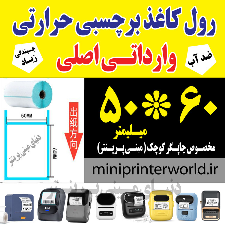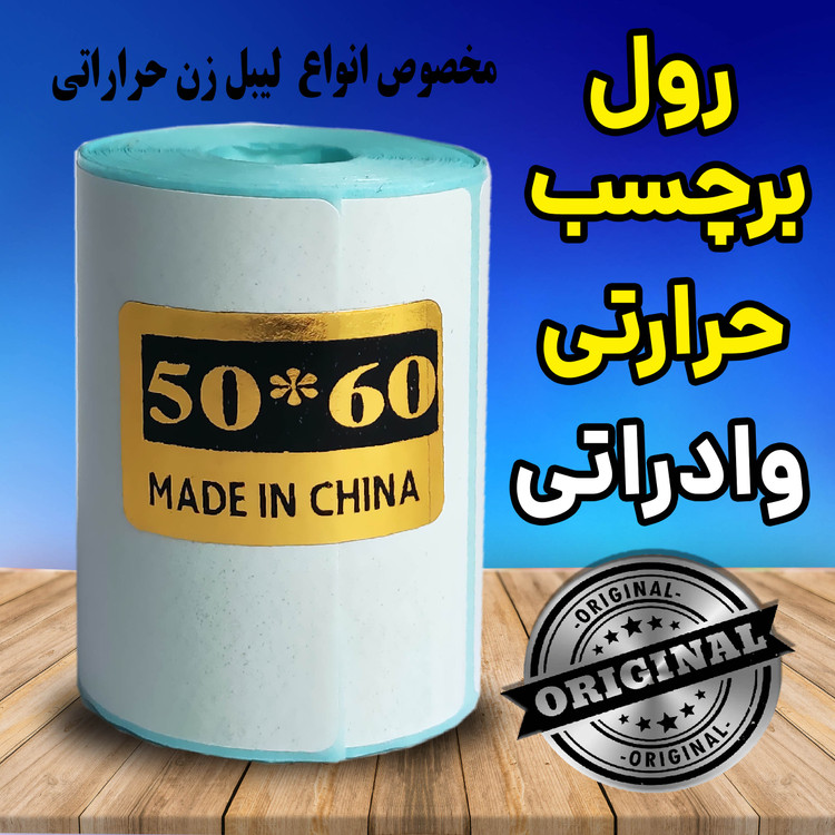 رول برچسبی حرارتی اندازه 50*60 میلیمتر چاپ بسیار پررنگ(ماندگاری چاپ یک سال )