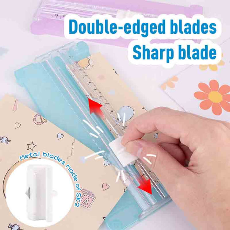 وجود خطکش مدرج دقیق روی بدنه کمک میکند برشها کاملاً صاف و اندازهگیریشده انجام شوند. تیغهی فلزی تیز و روان (SK2) داخل محفظهی محافظ قرار گرفته تا بدون تماس مستقیم با دست، برش ایمن و تمیز انجام شود؛ موضوعی بسیار مهم برای استفادهی دانشآموزان.