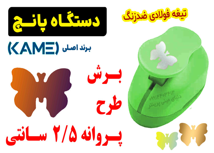 🦋 پانچ کاغذ طرح پروانه Kamei سایز 2/5 سانتی | برش تمیز و زیبا برای کاردستی و تزئینات