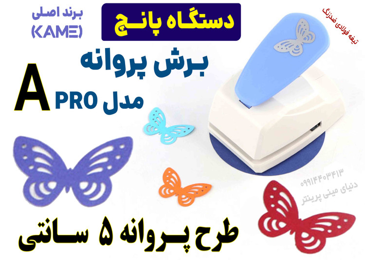 با پانچ طرح پروانه Kamei سایز ۵ سانتی میتوانید در چند ثانیه پروانههایی زیبا و منظم بسازید و خلاقیت خود را در کارهای هنری به نمایش بگذارید.