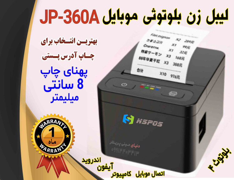 لیبل زن برقی بلوتوثی 8 سانتی حرارتی hspos مدل JP360A (رومیزی) سرعت بالا، بلوتوثی، طراحی مدرن