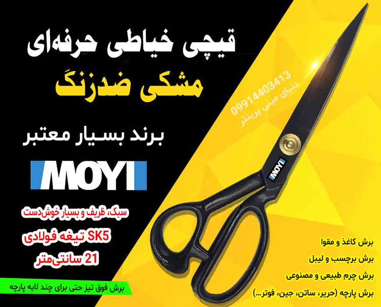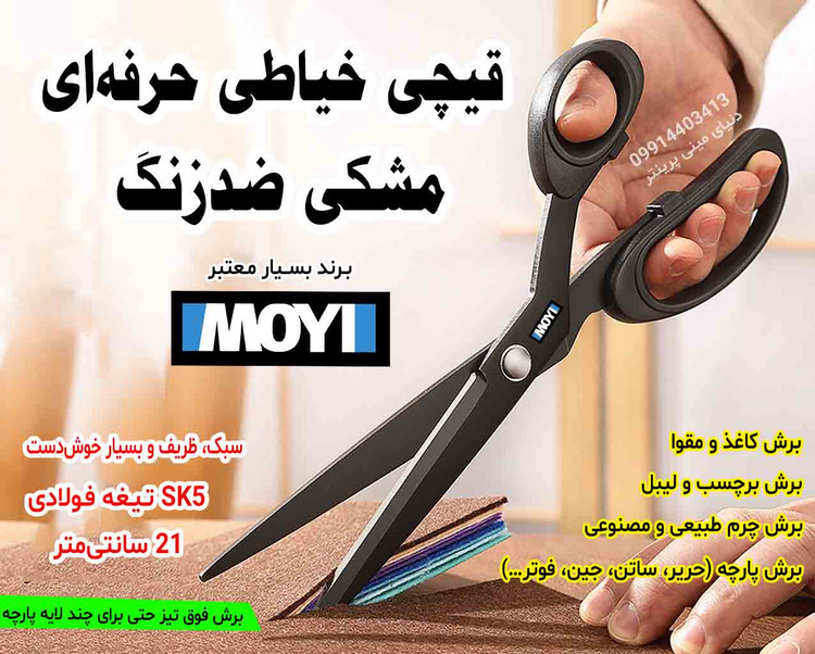 این قیچی ساخت کارخانه معتبر IMOYI در چین است و به دلیل کیفیت بالا و تیغههای بسیار تیز، در بسیاری از فروشگاهها و کارگاهها به عنوان یک ابزار حرفهای استفاده میشود.