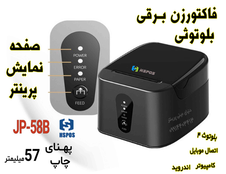 💥 فیش پرینتر حرارتی بلوتوثی HSPOS JP‑58B | چاپ سریع فاکتور و بارکد محصول با اتصال موبایل و کامپیوتر 💻📱