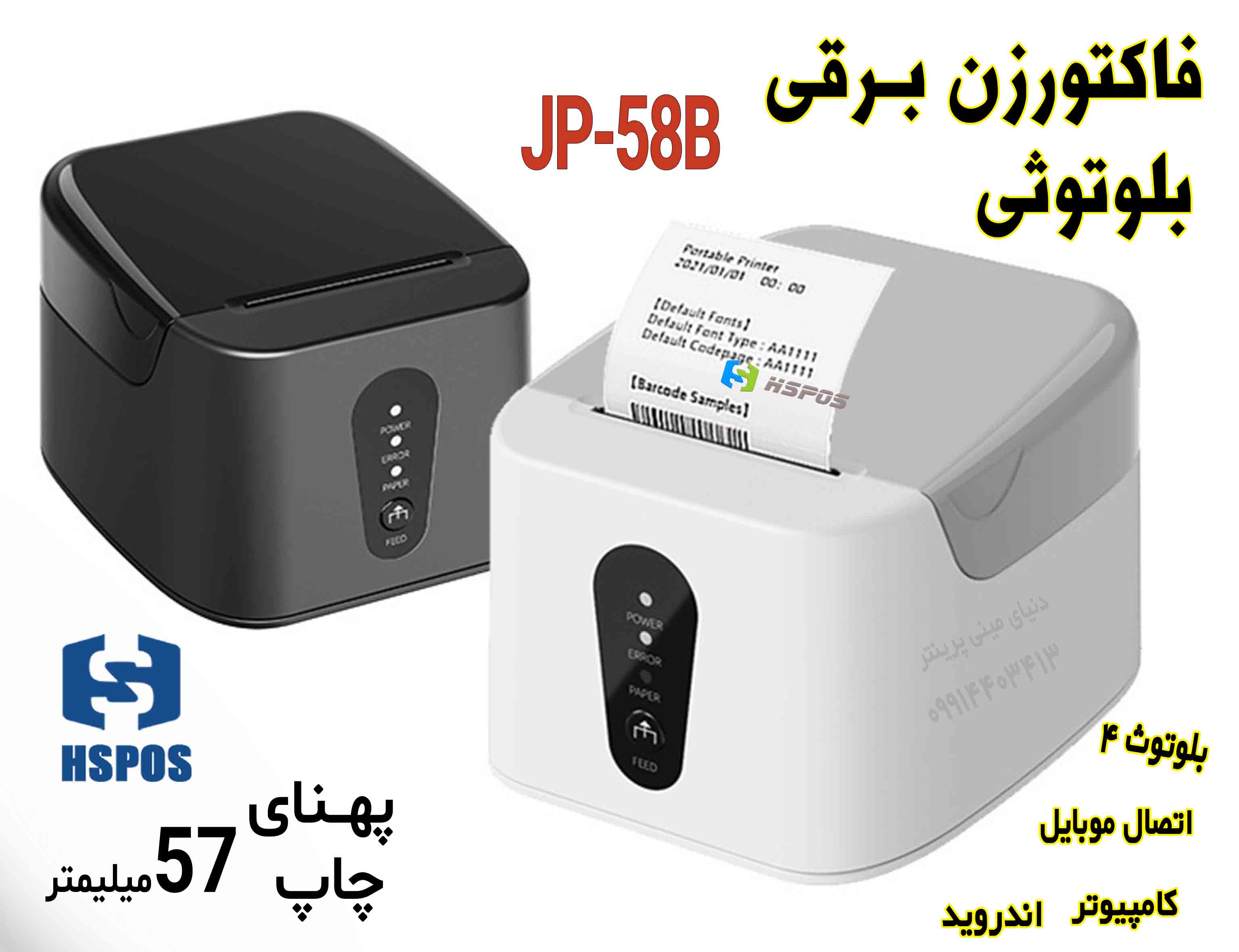 💥 فیش پرینتر حرارتی بلوتوثی HSPOS JP‑58B | چاپ سریع فاکتور و بارکد محصول با اتصال موبایل و کامپیوتر 💻📱