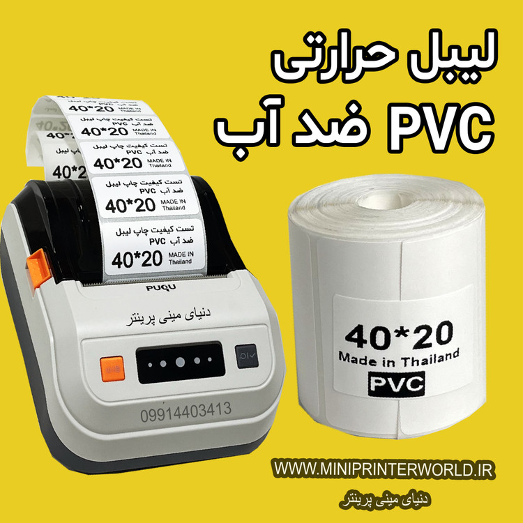رول برچسبی مینی پرینتر حرارتی اندازه 20 * 40 میلیمتر جنس PVC پاره نشو ضدآب ، چاپ بسیار شفاف و عالی