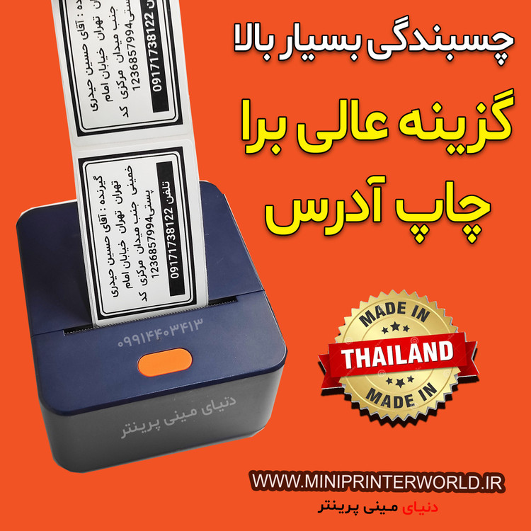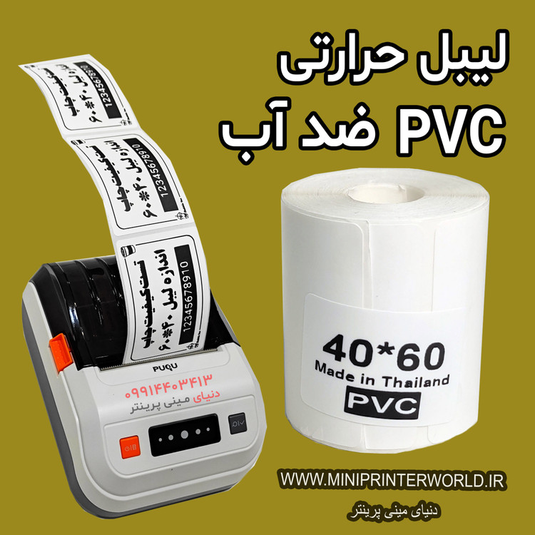 رول برچسبی مینی پرینتر حرارتی اندازه 60 * 40 میلیمتر جنس PVC پاره نشو ضدآب ، چاپ بسیار شفاف و عالی