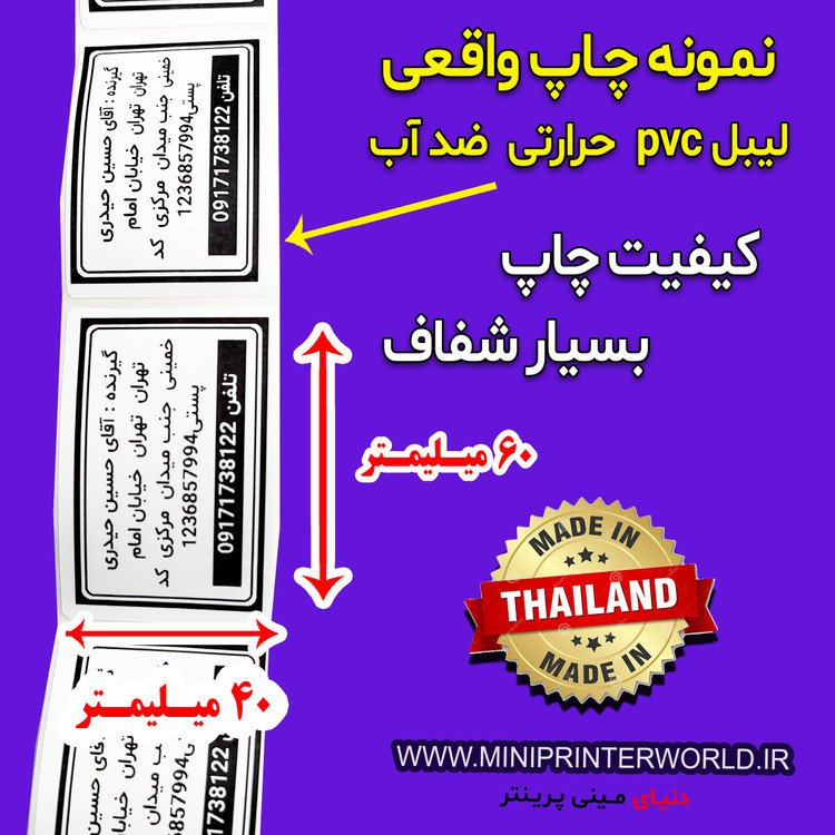 لیبل حرارتی pvc ساخت تایلند به استفاده ازمواد اولیه مرغوب چاپی بسیار پررنگ و شفاف به شما میدهد