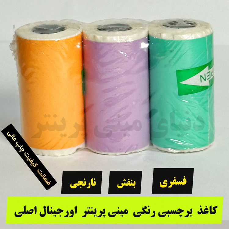 تذکر : کاغذ رنگی برچسبی حرارتی ایرانی به علت استفاده از مواد اولیه نامرغوب کیفیت چاپ بسیار ضعیف تحویل میده و در صورت استفاده زیاد به هد مینی پرینتر شما آسیب میزند به هیچ عنوان توصیه نمیشه برا مینی پرینتر استفاده کنید