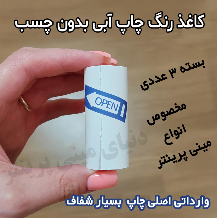 تذکر : کاغذ رنگی برچسبی حرارتی ایرانی به علت استفاده از مواد اولیه نامرغوب کیفیت چاپ بسیار ضعیف تحویل میده و در صورت استفاده زیاد به هد مینی پرینتر شما آسیب میزند به هیچ عنوان توصیه نمیشه برا مینی پرینتر استفاده کنید