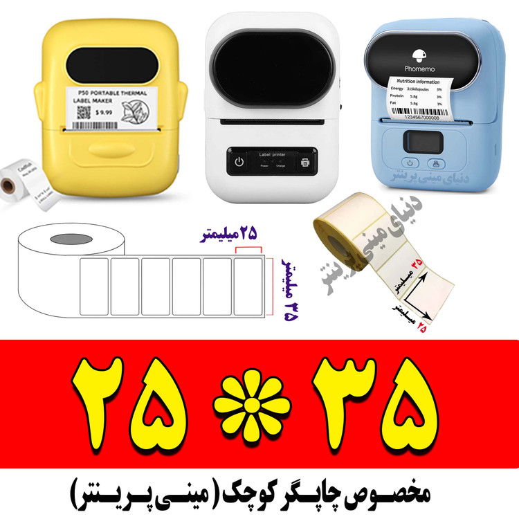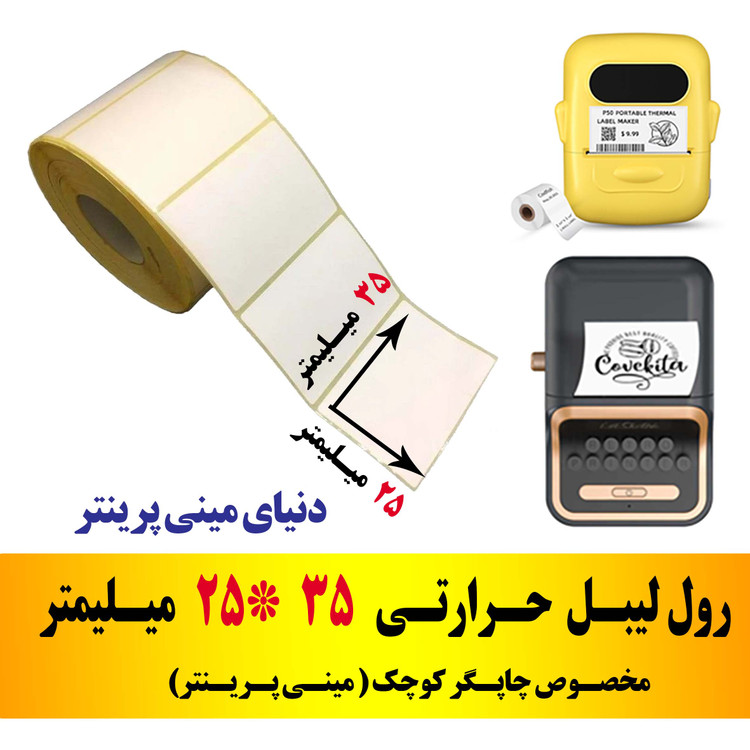 رول برچسب حرارتی اندازه 35*25 میلیمتر ساخت ایران جهت استفاده در تمامی لیبل زن موجود در بازار مثل phomemo و marklife و I label و bixolon و غیره هست