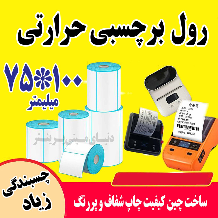 رول کاغذ برچسبی لیبل زن ساخت چین اندازه 100*75 میلیمتر حرارتی با چاپ بسیار پررنگ