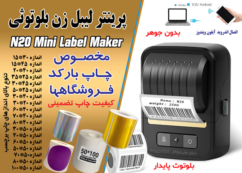 پرینتر و لیبل زن 8 سانتی بلوتوثی